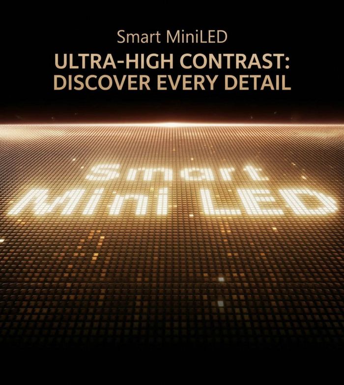 • Төгс дүрслэл: Smart Mini LED дэлгэц болон 4K Ultra HD нягтрал нь дүрсийг хамгийн бодит, тод, гүн тодосгогчтойгоор харуулна.