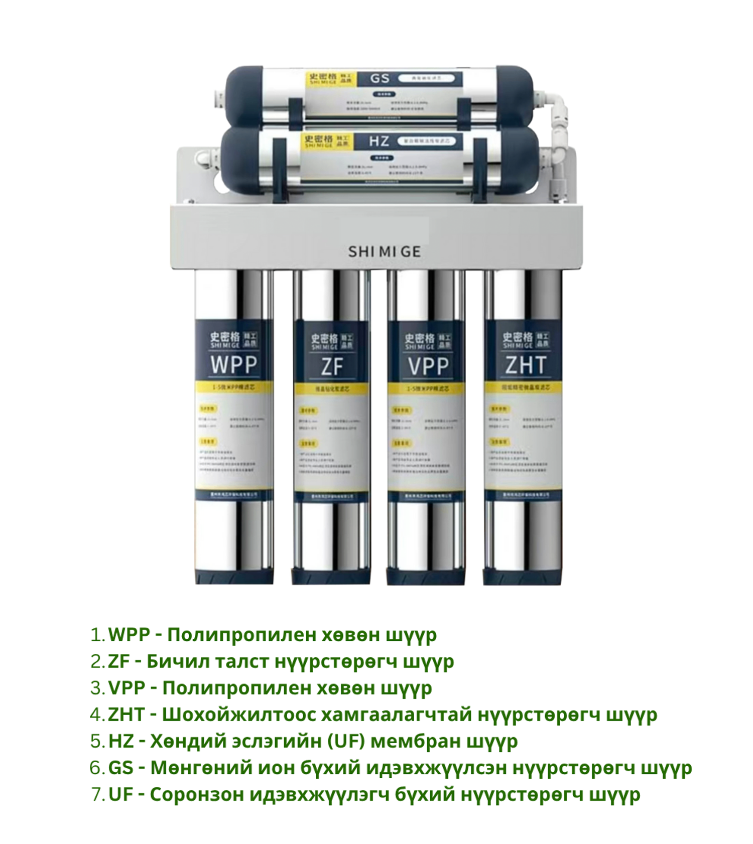 UF Соронзон идэвхжүүлэгч бүхий нүүрстөрөгч шүүр - Усны молекулуудыг соронзонжуулж (магнитизаци), усны энергийг дээшлүүлж, усыг идэвхжүүлнэ.